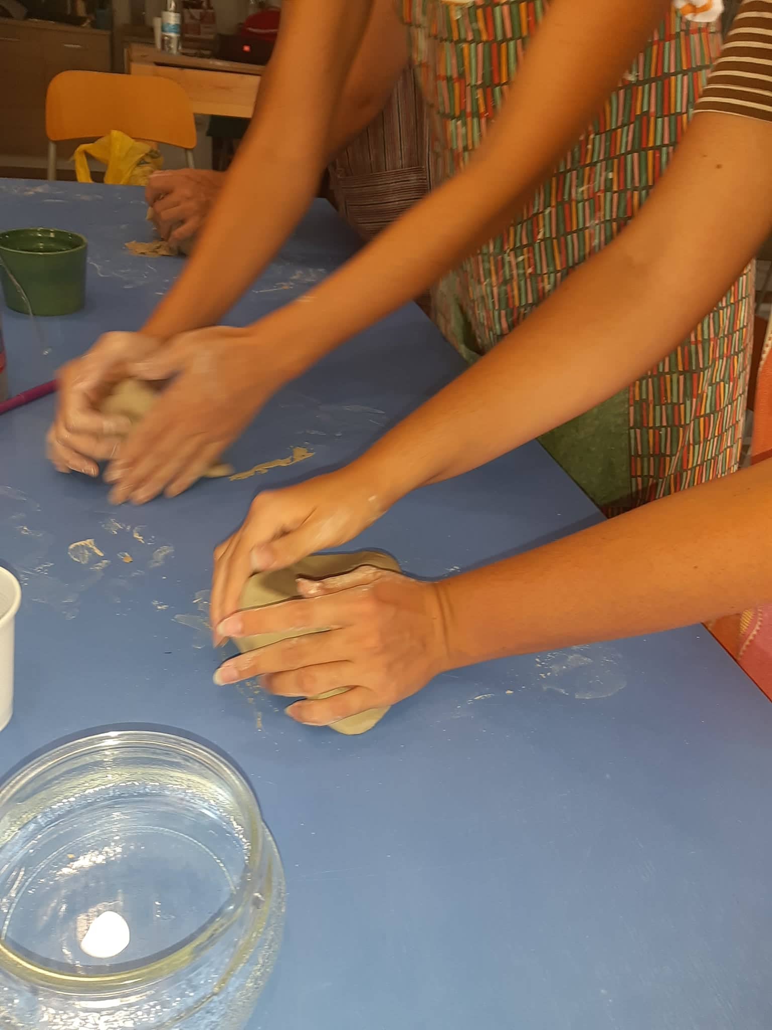 Under the guidance of Souzana Petri, participants familiarized themselves with the tactile experience of working with clay—their minds and bodies enveloped in the world of creativity end empowerment drawn from turning an amorphous mass into a work of art.